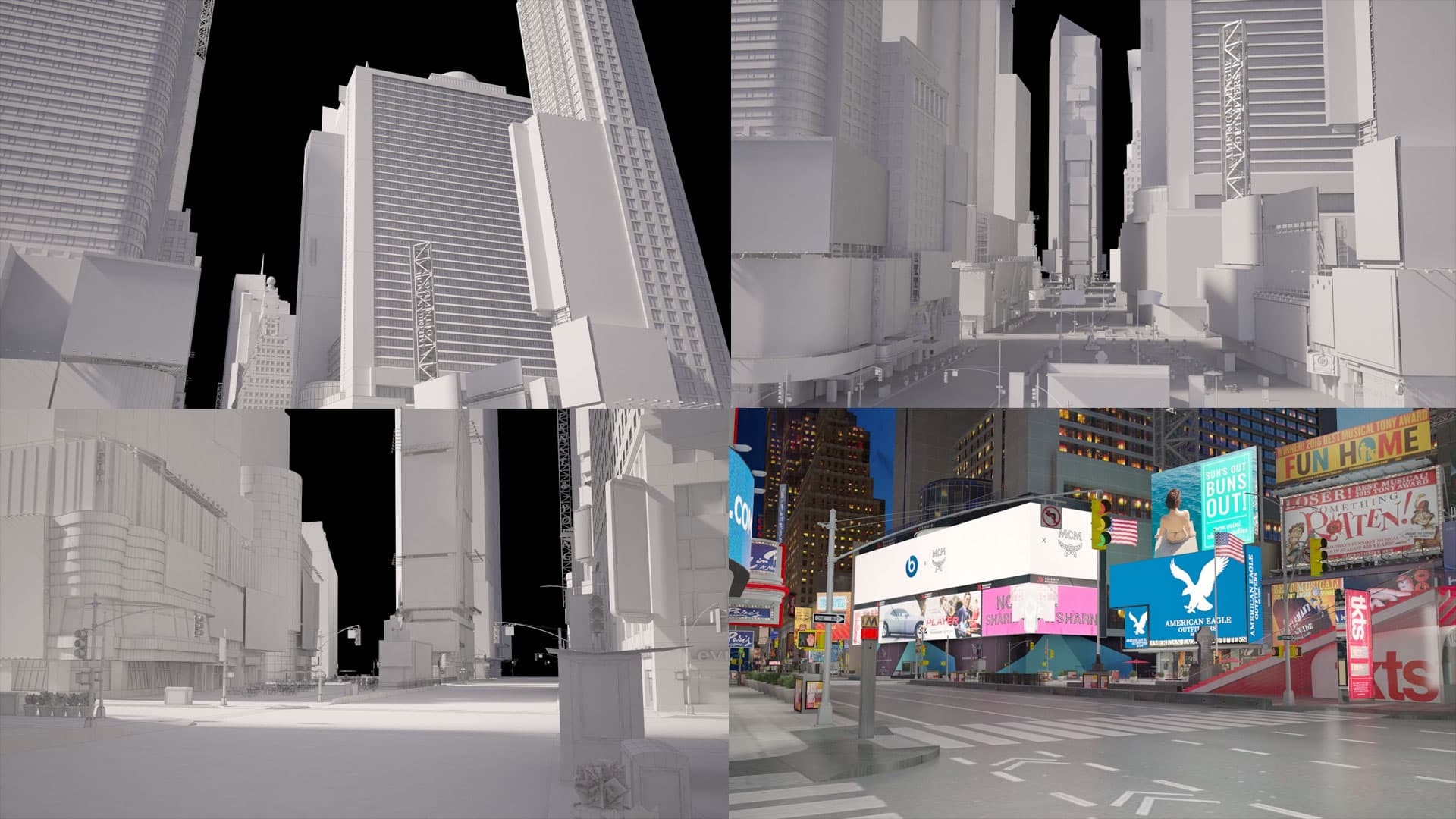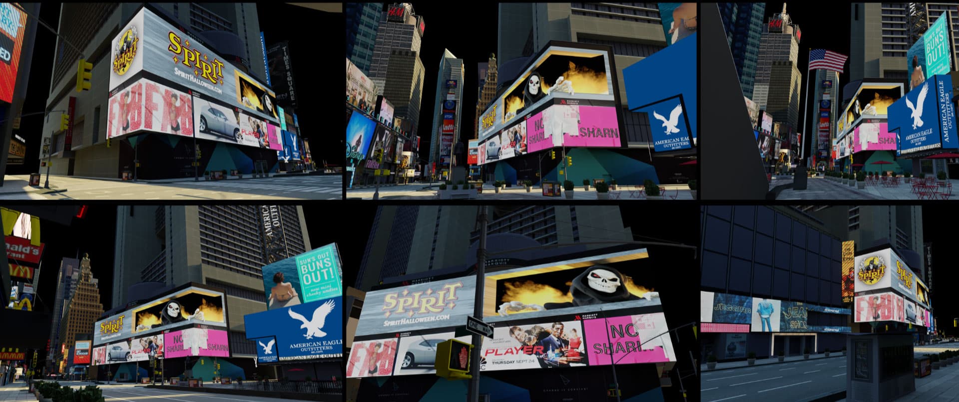 We design the billboard animation for the actual billboard location and the optimal viewing point. Part of our production process is to create the actual location of the billboard in 3d and then view the various stages of the production in VR.