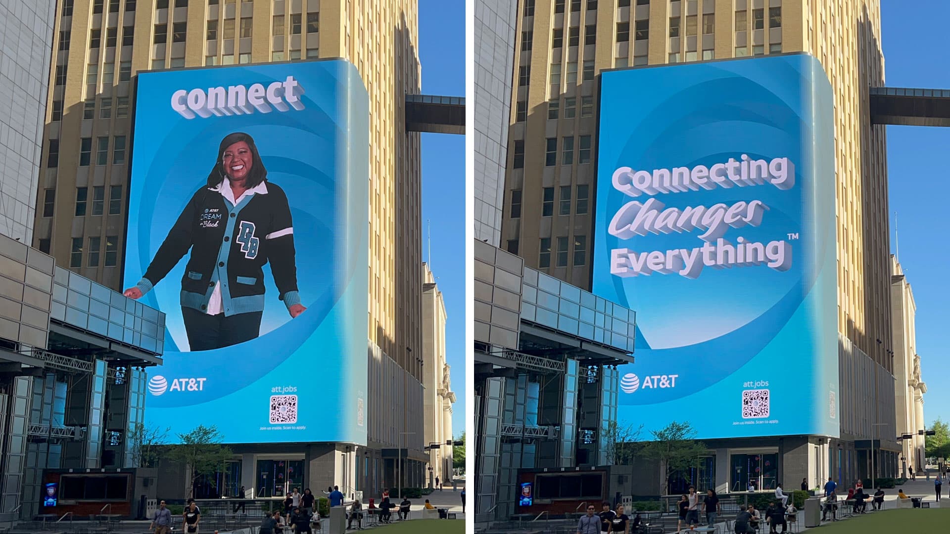 Another example of how different aspect ratios of billboards work is the Groove Jones' OOH experience for AT&T, which featured employees in a vertical format. We could leverage the person's height within this format and create an experience so the featured team member breaks the planes of the frame. AT&T Billboard