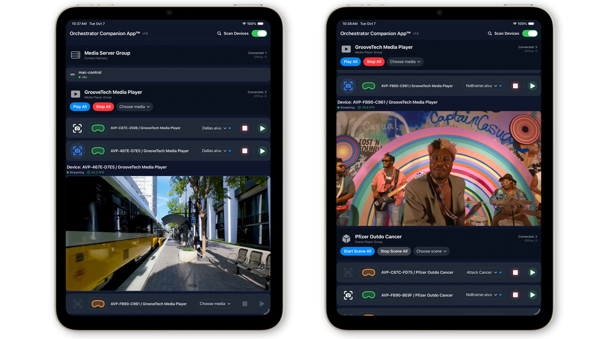 - Media Playback Management: Select and start content on individual or multiple devices simultaneously.