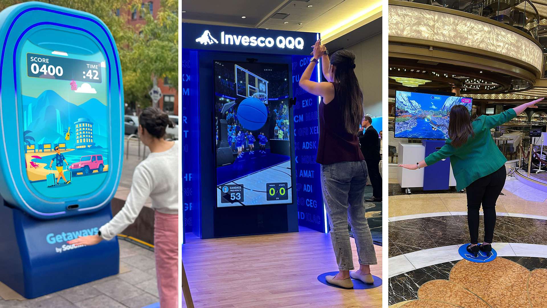 What makes these experiences so powerful for brands is their operational simplicity: each activation can be set up in a matter of minutes, requires only a small area of five to eight feet, and works seamlessly both indoors and outdoors under a wide range of lighting conditions. In the Southwest Airlines activation, participants engaged with a computer vision game that responded to their motions as they “flew” through vacation challenges, while at the Invesco QQQ experience fans competed in a basketball-themed interaction that tracked their movements and rewarded performance with instant visual feedback. For Princess Cruises, computer vision enabled a nature-themed game where players interacted with virtual wildlife and scored points by moving naturally within the space.